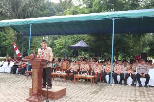 Pengumuman akhir LT-IV Kwarda Aceh dibacakan Tim Juri, Sekaligus Ketua harian Kwarcab Langsa Cut Bang Ir Abdurrahman Ardo, MM, MPd.